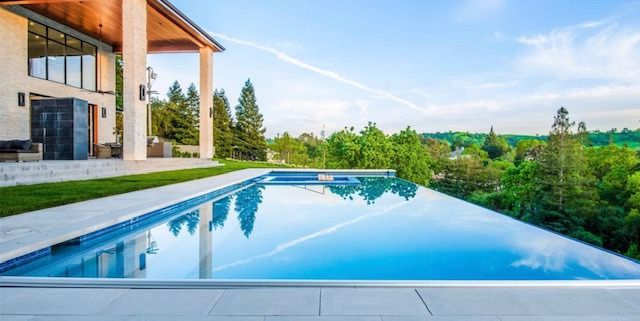 You name it, this project has it! Specialized engineering was needed to build this spectacular 45' infinity edge design, which offers the owners unobstructed sweeping views of the Mt. Diablo foothills from inside and out of the pool.