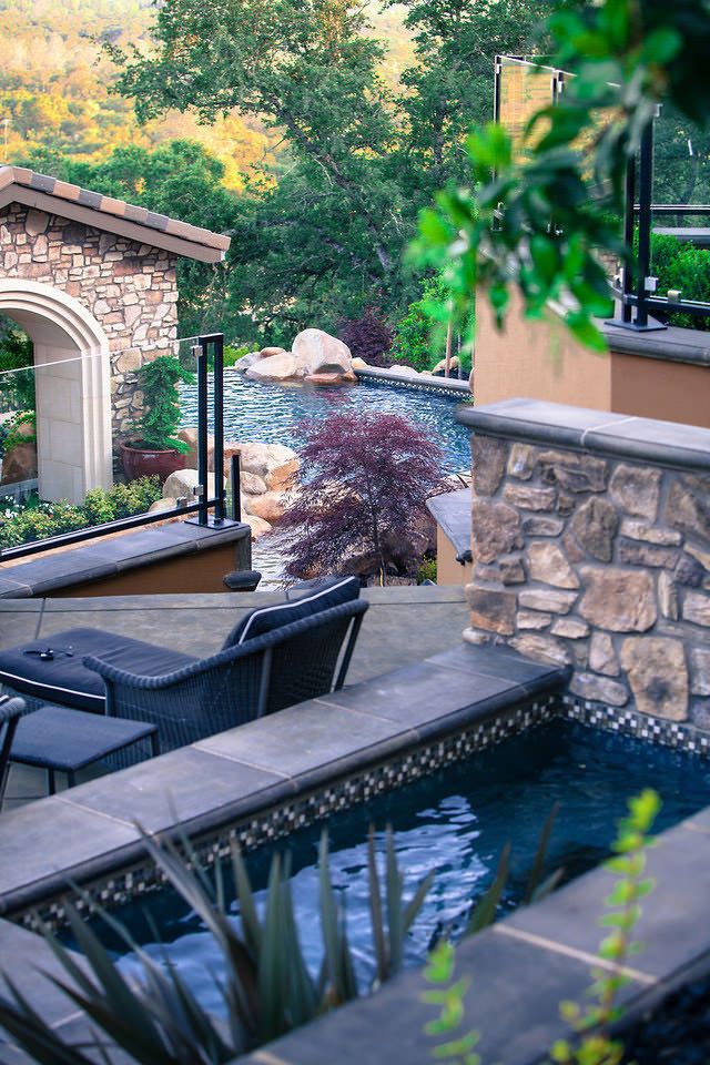 The prestigious Wine and Roses Spa/Resort sought our expertise in designing something special. Features include two heated plunge pools which are fed by a massive streambed-style water feature.
