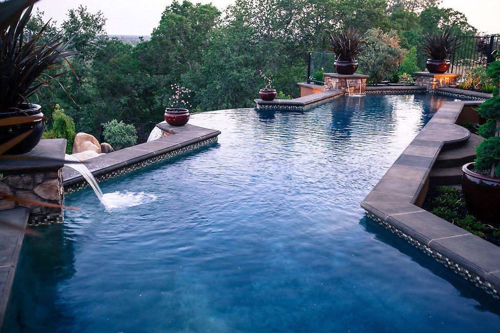 You name it, this project has it! Specialized engineering was needed to build this spectacular 45' infinity edge design, which offers the owners unobstructed sweeping views of the Mt. Diablo foothills from inside and out of the pool.