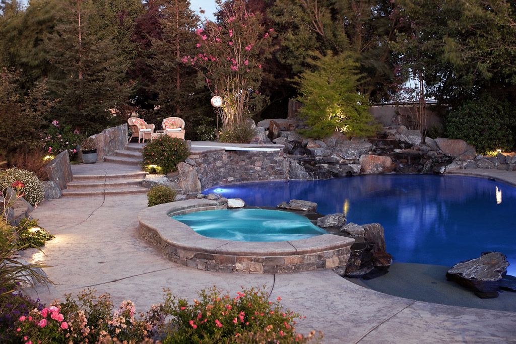 The prestigious Wine and Roses Spa/Resort sought our expertise in designing something special. Features include two heated plunge pools which are fed by a massive streambed-style water feature.